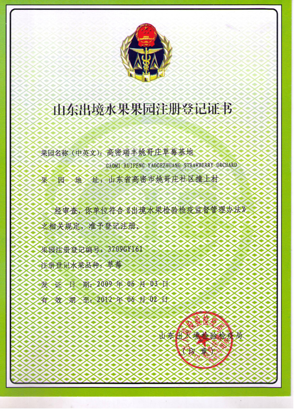 • 草莓果園注冊登記證書